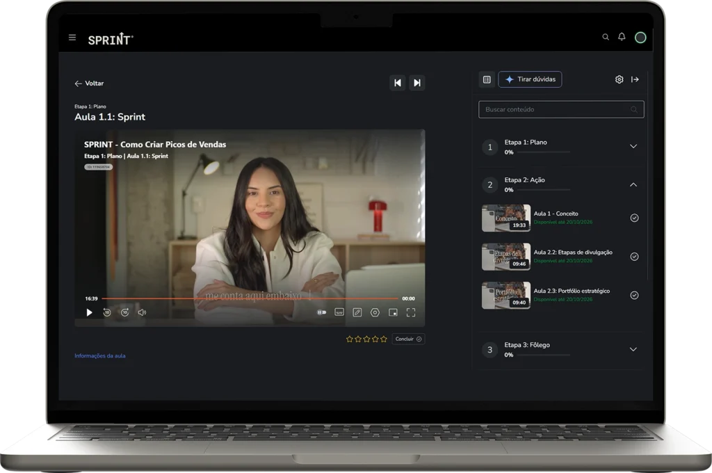 Entrando agora, você terá acesso ao conteúdo completo do SPRINT. Se, em 7 dias, você assistir às aulas e não gostar, devolvemos todo o seu dinheiro de forma simples e segura.